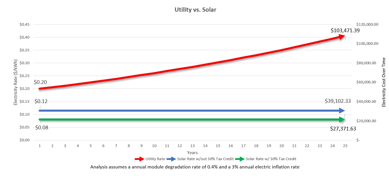 In summary, switching to solar is a smart financial decision, with or without the tax credit. Either way, you lock in your electric rate, thus protecting yourself from rising utility costs for decades to come.